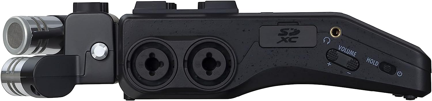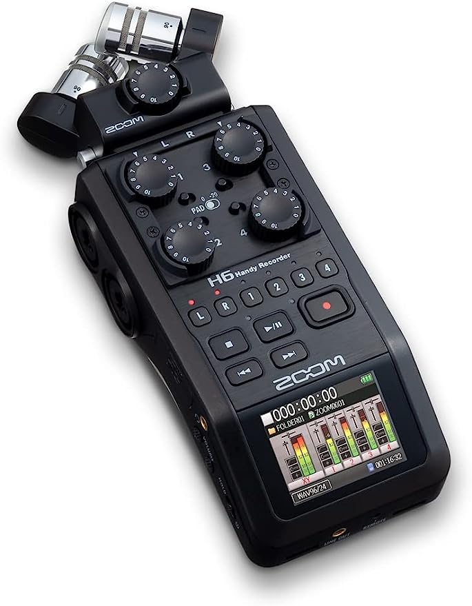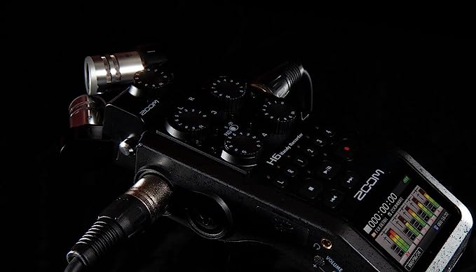 Enregisteur multipiste numérique 6 pistes à microphones intercheangeables – 1x couple X/Y avec angle de prise de 90° ou à 120° (XYH-6) – 1x microphone Mid-side (MSH-6) – formats d’enregistrement : WAV 16/24bit, 44.1/48/96kHz WAV 16/24bit, 44.1/48/96kHz, MP3 (de 48 à 320kbps, 44.1kHz) – enregistrement sur carte SD/SDHC/SHXC jusqu’à 128GB – fonctions : lecteur de cartes USB, interface audio USB 6 entrées/2 sorties, filtre passe-haut, compresseur/limiteur, accordeur, métronome, vitesse et hauteur de note variables, édition, mélangeur et encodage MP3 – écran LCD rétro-éclairé de 1.9″ (128×64 pixels) – 4x entrées XLR combo micro/ligne avec alimentation fantôme, gain et Pad -20 dB – entrée mic-line addtionnelle sur XYH-6 (Plug-in power supporté) – sortie ligne/casque miniJack stéréo 3.5mm – haut parleur intégré 400mW – port USB 2.0 – fonctionne sur 4x piles LR6 (jusqu’à 21H d’autonomie) ou adaptateur secteur AD-17 (en option) – livré avec microphone XYH6 et 4x piles LR6 – poids : 280g – dimensions (mm) : 78 (L) x 48 (p) x 153 (h) – en option : microphone canon SGH-6, entrées mic/ligne EHX-6, pack d’accessoires APH-6n