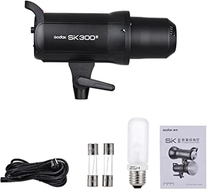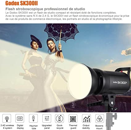 • Le flash de studio GODOX SK300II est un flash léger, compact et durable. Avec son prix très accessible, Il est très complet au niveau de ses fonctions de prise de vue.