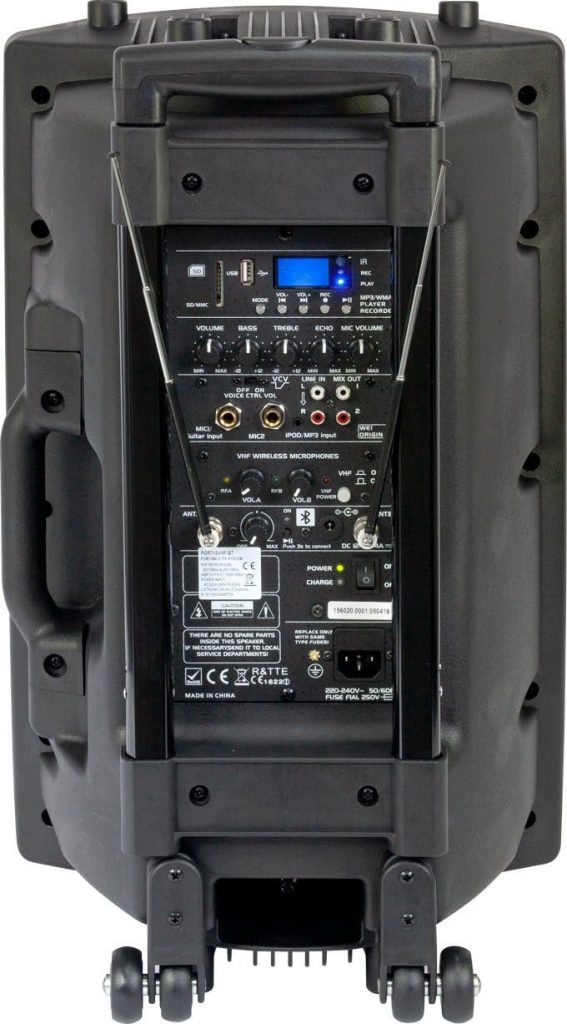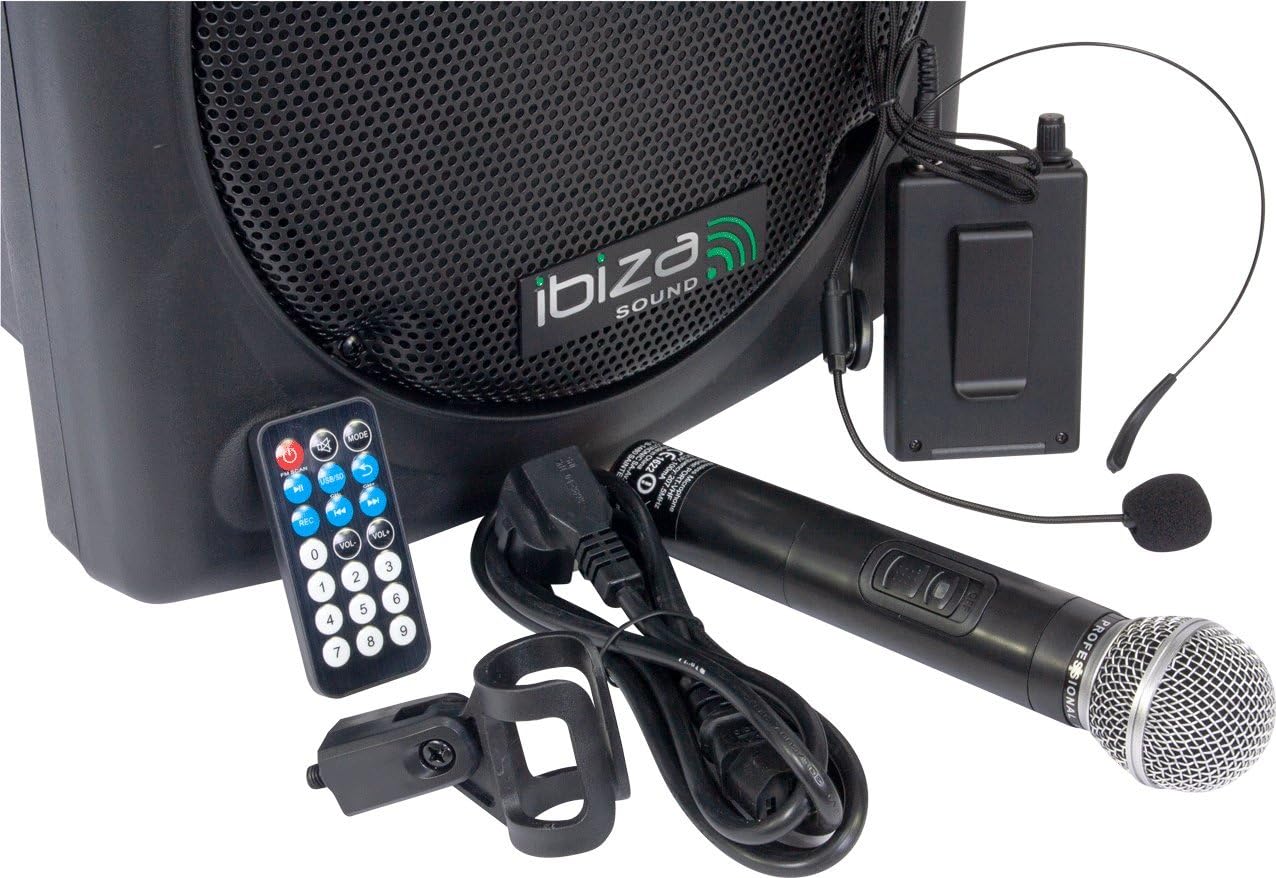 PORT12VHF-BT – IBIZA – Enceinte portable 12″/700W MAX avec 2 micros (VHF), télécommande et housse de protection – Bluetooth, USB, SD – Autonomie de 3 à 5h